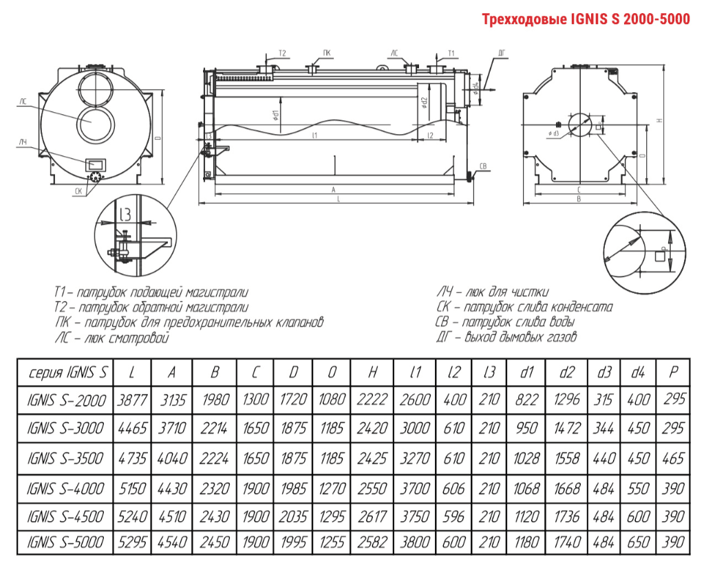 Технические характеристики водогрейного трёхходового котла ARCUS IGNIS S-5000